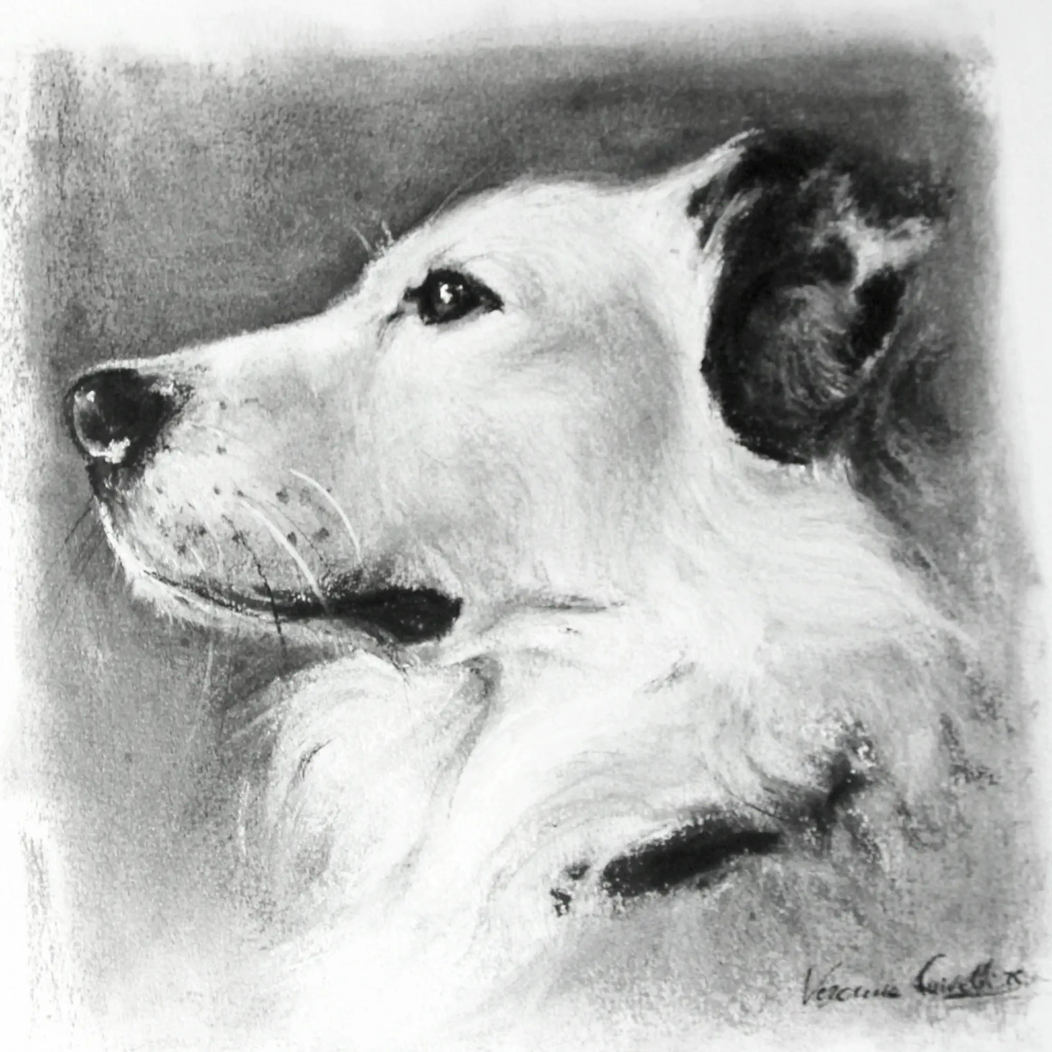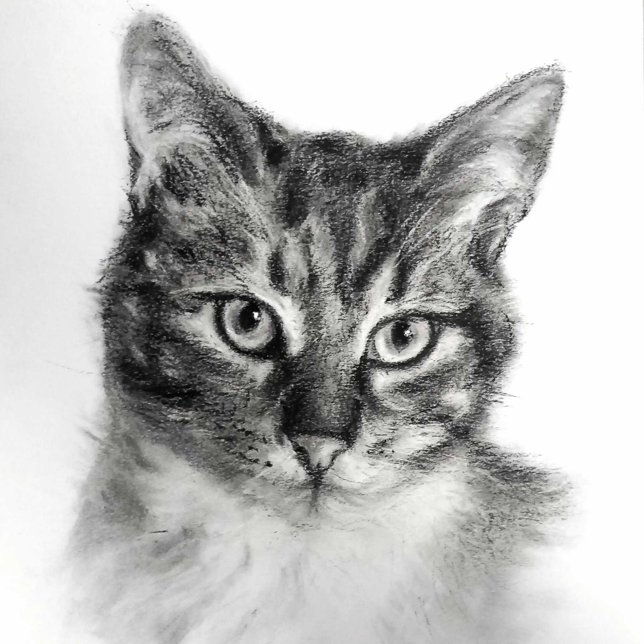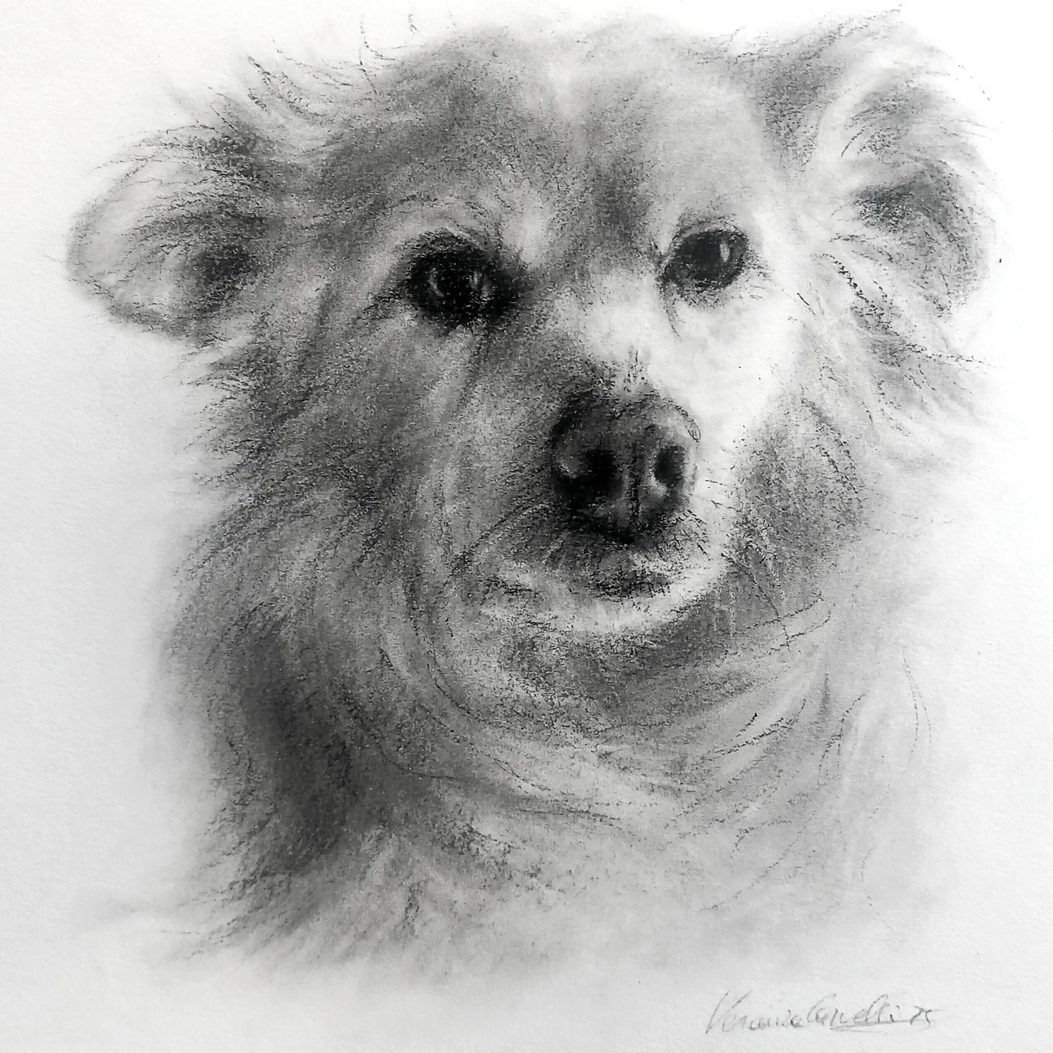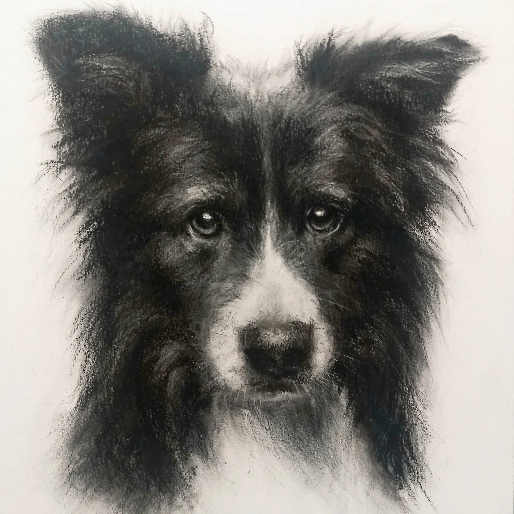 I ritratti in bianco e nero sono realizzati a carboncino su carta di pregio: una tecnica pura, capace di regalare un’emozione profonda e un forte impatto visivo. In ogni dipinto ricerco l’armonia tra chiaroscuri e volumi per dare forma a contrasti vibranti, sospesi tra pittura e scultura. È un dialogo tra ombre e luci che dona al ritratto personalizzato del tuo cane o del tuo gatto un fascino senza tempo.