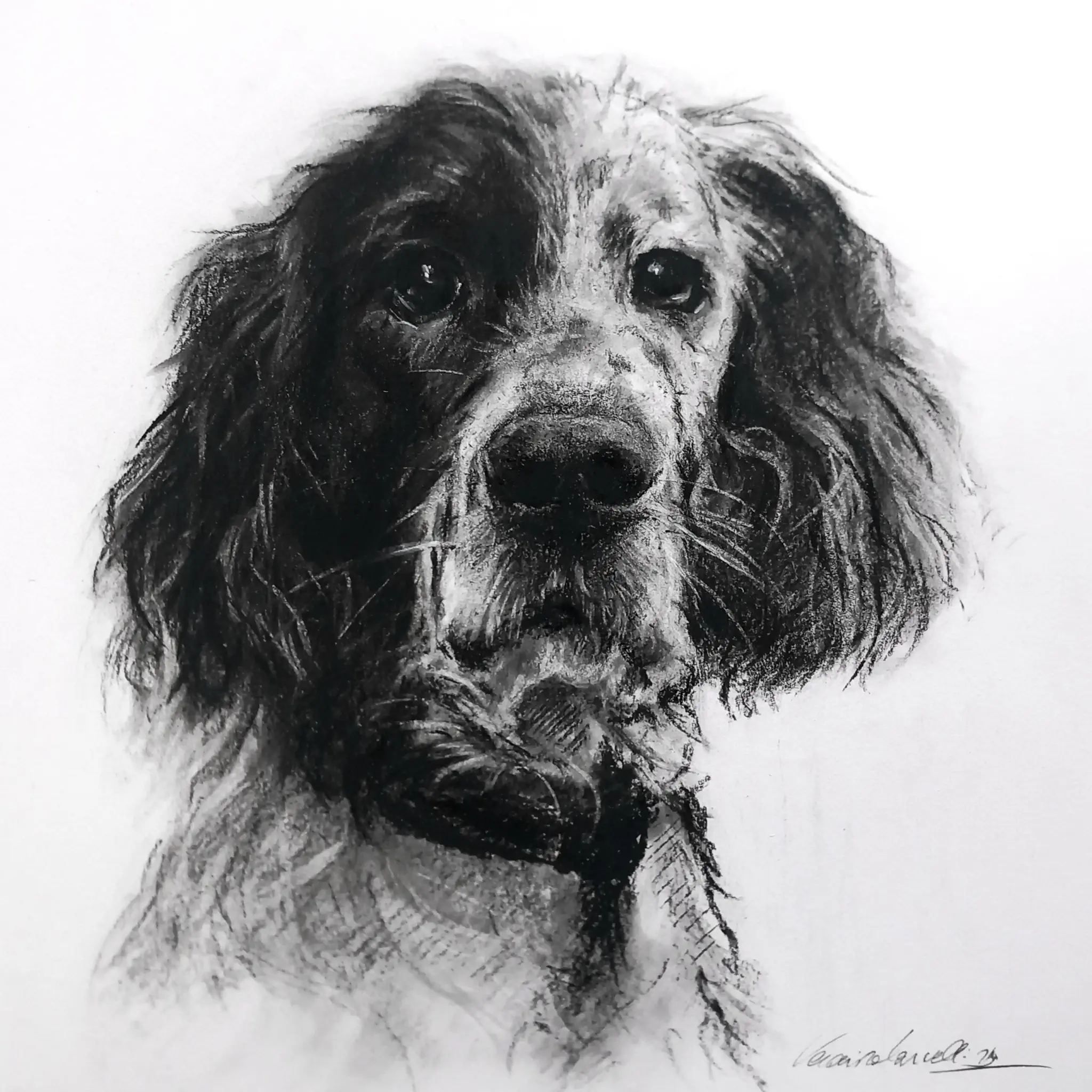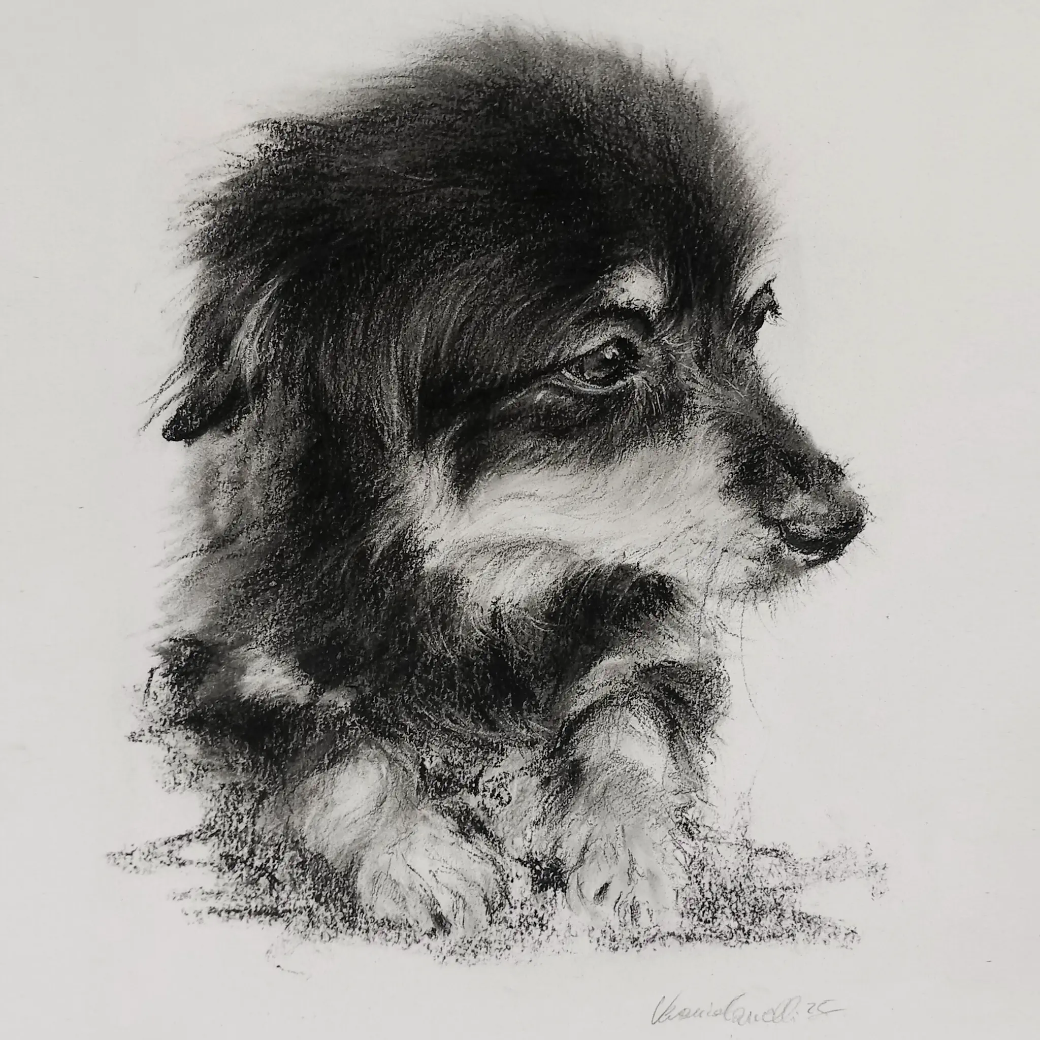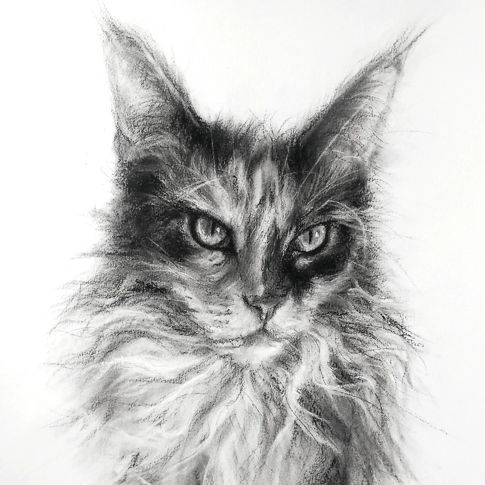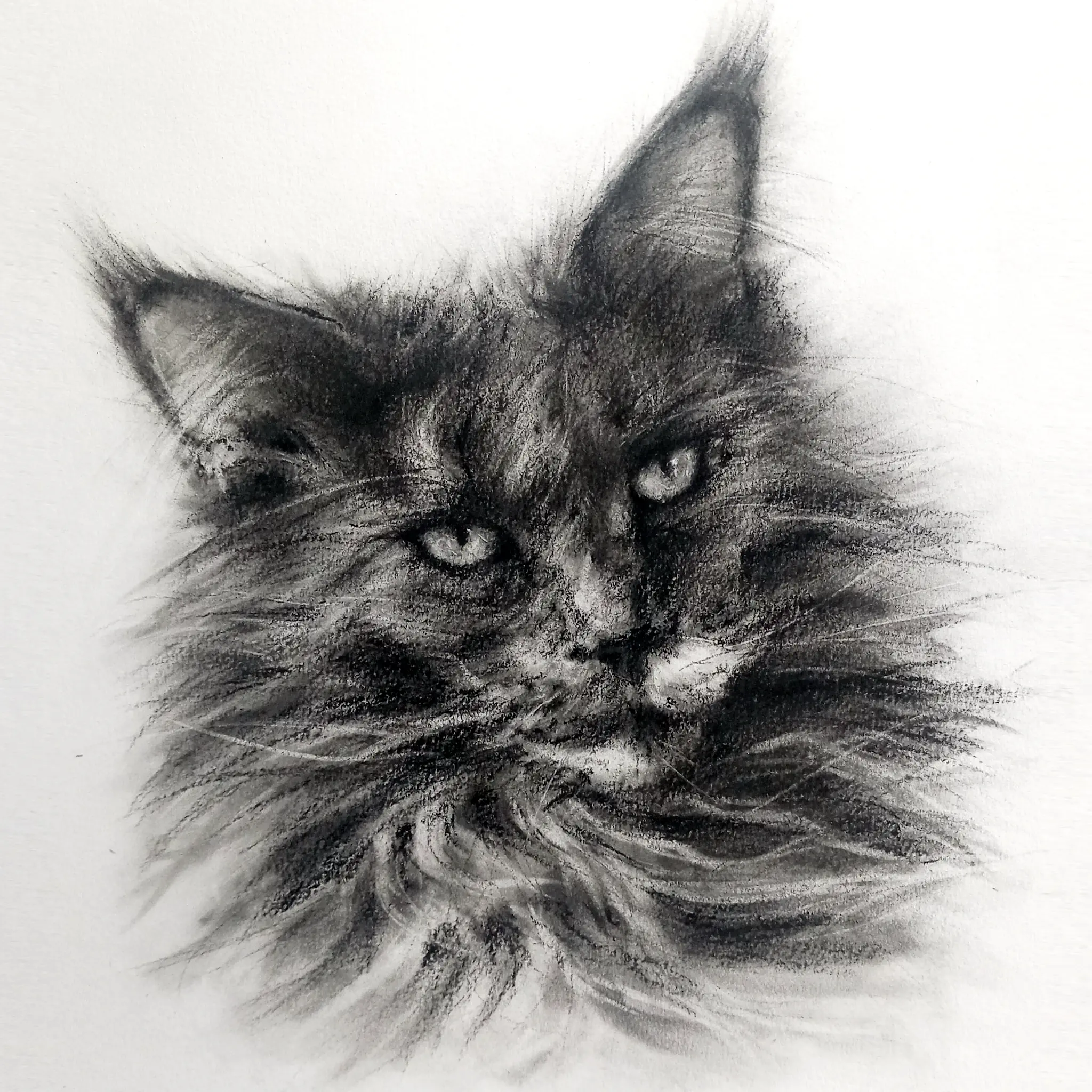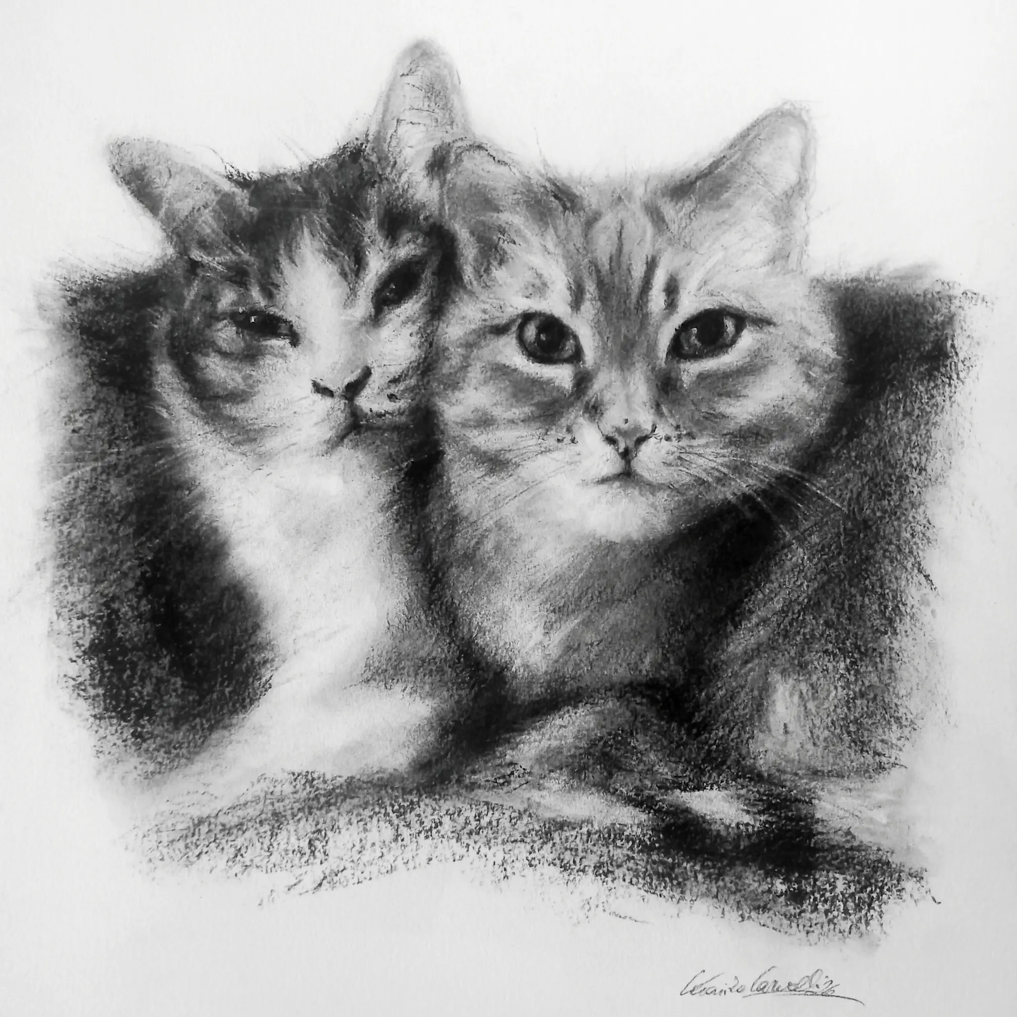 I ritratti in bianco e nero sono realizzati a carboncino su carta di pregio: una tecnica pura, capace di regalare un’emozione profonda e un forte impatto visivo. In ogni dipinto ricerco l’armonia tra chiaroscuri e volumi per dare forma a contrasti vibranti, sospesi tra pittura e scultura. È un dialogo tra ombre e luci che dona al ritratto personalizzato del tuo cane o del tuo gatto un fascino senza tempo.